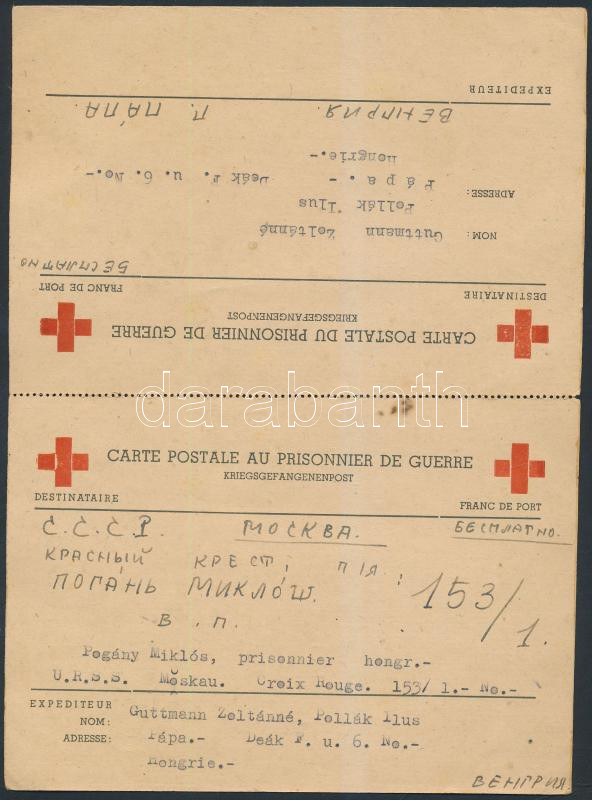 cca 1946 Vöröskeresztes hadifogoly levelezőlap https://www.darabanth.com/hu/255-Gyorsarveres/255.0/Festmeny-mutargy-papirregiseg-egyeb/Militaria~600027/cca-1946-Voroskeresztes-hadifogoly-levelezolap~II1244294