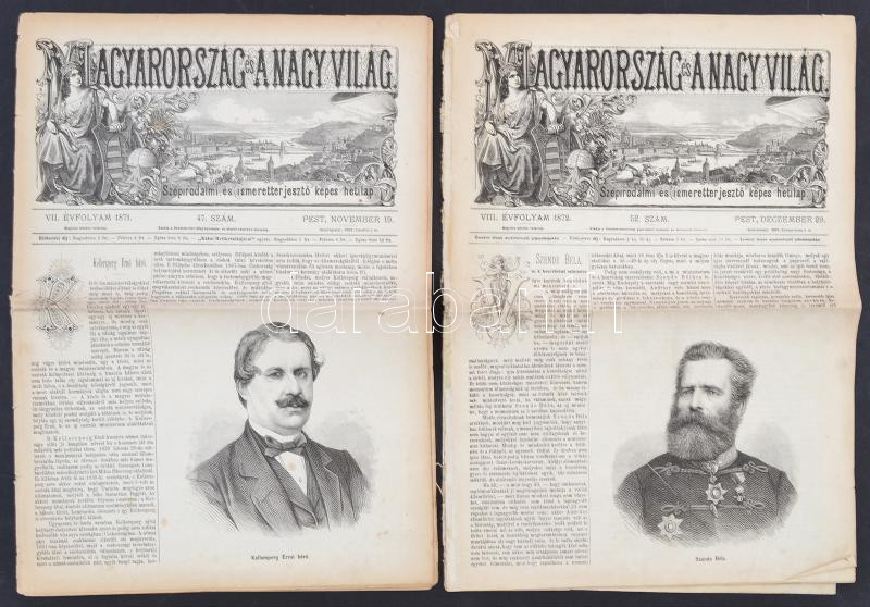 Leírás: 1871-72 Magyarország és a nagyvilág, Szépirodalmi és ismeretterjesztő képes hetilap, 2 db száma, pp.:16, 38x28cm