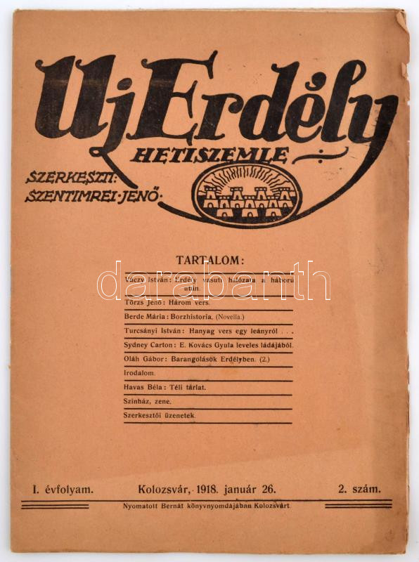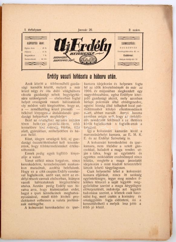 Leírás: 1918 az Új Erdély heti szemle 1. évf. 2. lapszáma, benne érdekes írásokkal