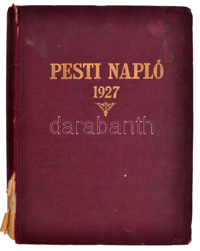 1927 A Pesti Napló teljes évfolyama könyvbe kötve, sérült gerinccel, k... https://www.darabanth.com/hu/255-Gyorsarveres/255.0/Festmeny-mutargy-papirregiseg-egyeb/Nyomtatvanyok~600029/1927-A-Pesti-Naplo-teljes-evfolyama-konyvbe-kotve-serult-gerinccel-kijaro-lappal~II1248292