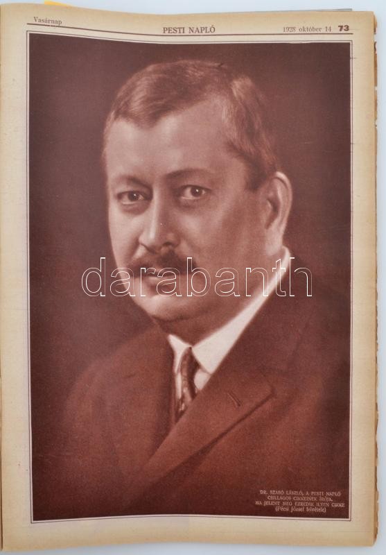 1928 A Pesti Napló számai egybe kötve, gerinc és kötés hiányzik https://www.darabanth.com/hu/255-Gyorsarveres/255.0/Festmeny-mutargy-papirregiseg-egyeb/Nyomtatvanyok~600029/1928-A-Pesti-Naplo-szamai-egybe-kotve-gerinc-es-kotes-hianyzik~II1247005