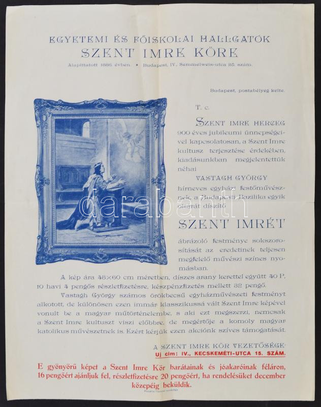 1930 Az Egyetemi és Főiskolai Hallgatók Szent Imre körének Szent Imrét... https://www.darabanth.com/hu/255-Gyorsarveres/255.0/Festmeny-mutargy-papirregiseg-egyeb/Nyomtatvanyok~600029/1930-Az-Egyetemi-es-Foiskolai-Hallgatok-Szent-Imre-korenek-Szent-Imret-abrazolo-festmennye~II1250195