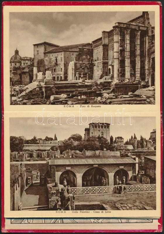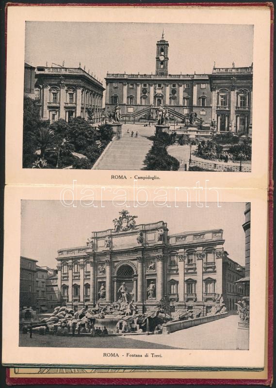 Ricordo di Roma. 32 Vedute. Képes leporelló Róma városáról, látképekkel, négynyelvű leírásokkal. illetve Ricordo di Roma parte II leporelló ötnyelvű leírásokkal.
