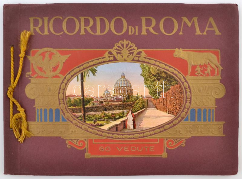 Ricordo di Roma. 60 Vedute. Képes füzet Róma városáról, látképekkel, n... https://www.darabanth.com/hu/255-Gyorsarveres/255.0/Festmeny-mutargy-papirregiseg-egyeb/Nyomtatvanyok~600029/Ricordo-di-Roma-60-Vedute-Kepes-fuzet-Roma-varosarol-latkepekkel-negynyelvu-leirasok~II1247746