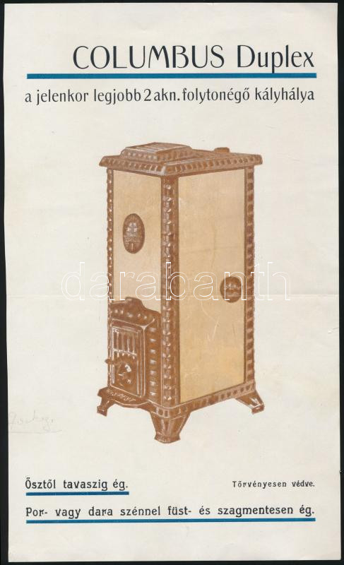 cca 1920-1930 A Columbus Duplex "a jelenkor legjobb folytonégő kályháj... https://www.darabanth.com/hu/255-Gyorsarveres/255.0/Festmeny-mutargy-papirregiseg-egyeb/Nyomtatvanyok~600029/cca-1920-1930-A-Columbus-Duplex-a-jelenkor-legjobb-folytonego-kalyhajanak-szorolapja~II1241595