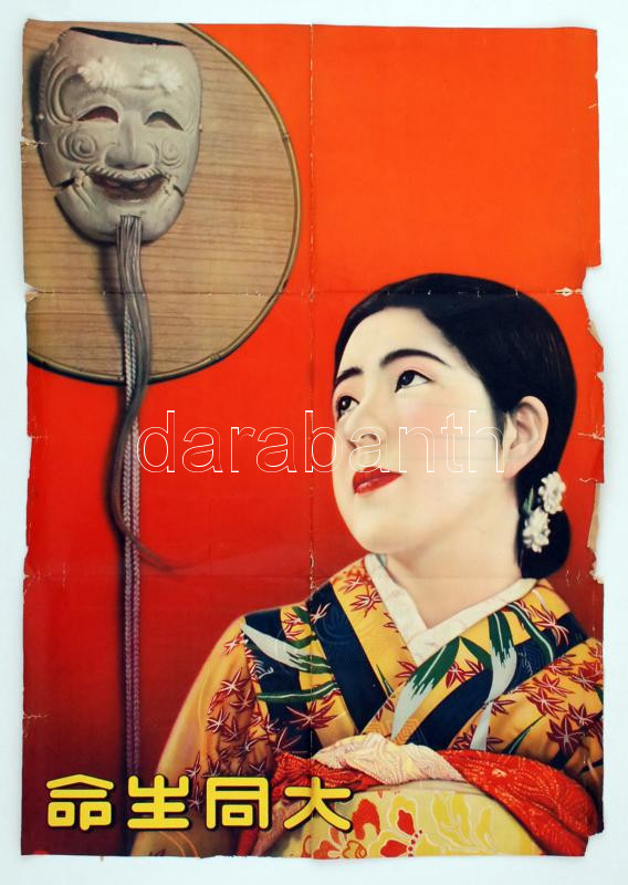 cca 1930-1940 Nagyméretű japán plakát, hajtott; 1 dn japán vízfestmény https://www.darabanth.com/hu/255-Gyorsarveres/255.0/Festmeny-mutargy-papirregiseg-egyeb/Nyomtatvanyok~600029/cca-1930-1940-Nagymeretu-japan-plakat-hajtott-1-dn-japan-vizfestmeny~II1245126