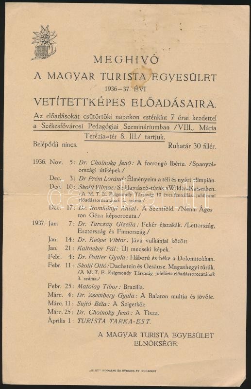 Leírás: cca 1930 Magyar Turista Egylet 3 db meghívó és nyomtatvány