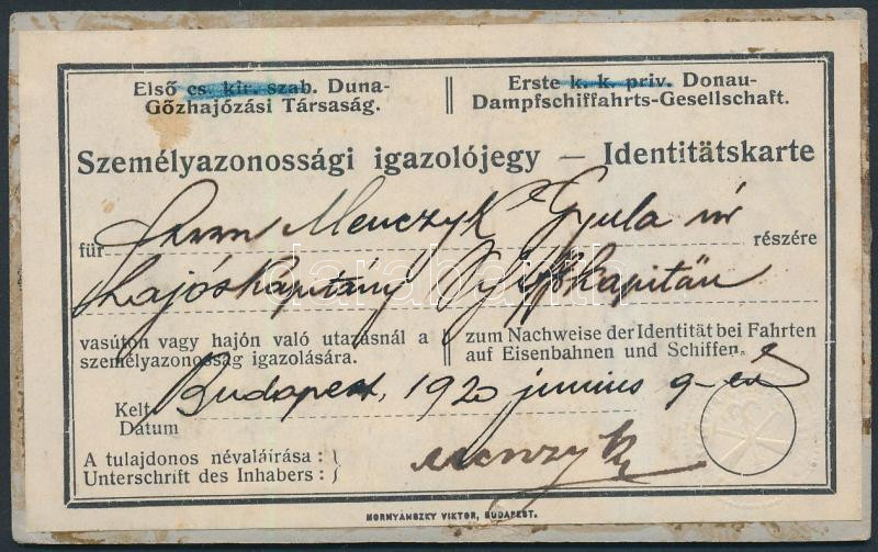 Leírás: 1920 Budapest, Hajóskapitány személyazonosító igazolványa / Hungarian ship captain ID