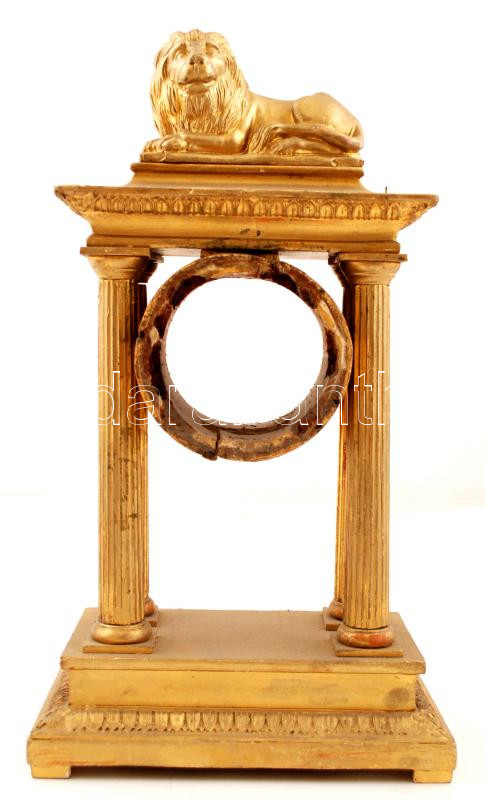 Leírás: Aranyszínű oroszlános fa órakeret, sérült, m: 38,5 cm