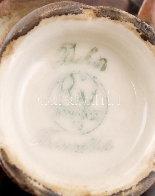 Leírás: Bavaria porcelán mokkás készlet: fedeles kiöntő (M: 18,5 cm), cukortartó (m: 10,5 cm), kis kiöntő (m: 9 cm), 6 db csésze+alj (d: 7 ill. 11 cm), jelzettek, kopásnyomokkal