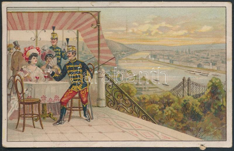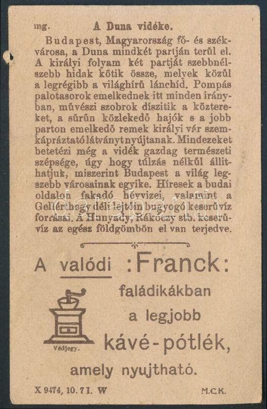 Leírás: cca 1910 Franck kávépótlék reklám litho gyűjtőkártya budapesti látképpel és ismertető szöveggel