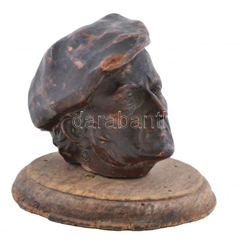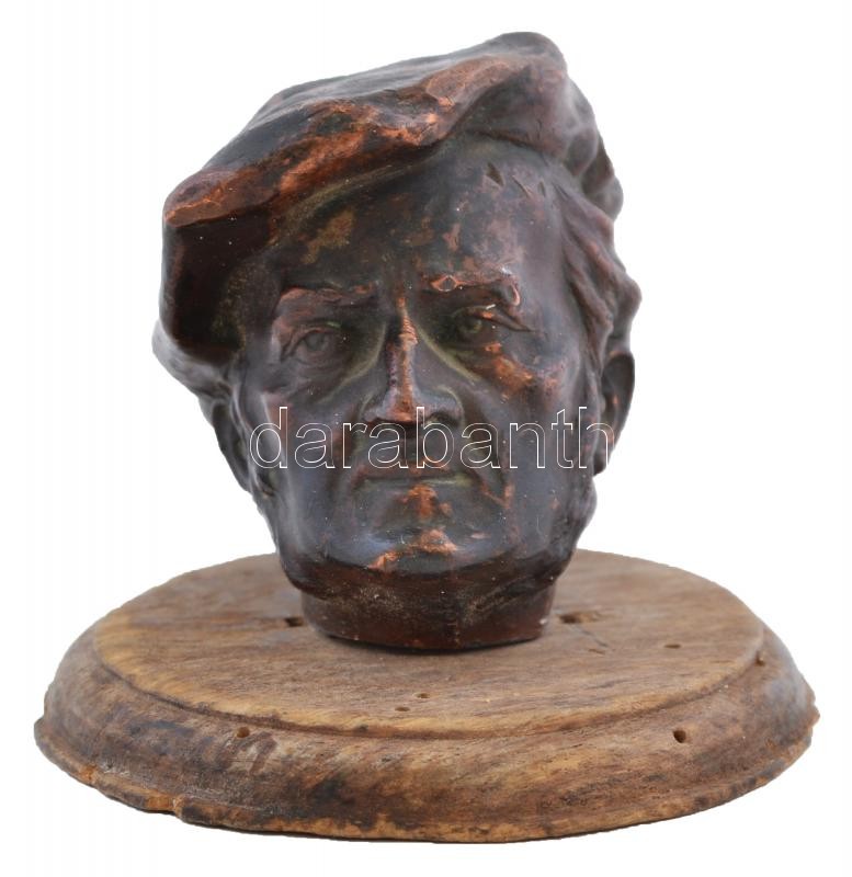 Leírás: Wagner fej, réz, fa talapzaton, jelzés nélkül, m:5 cm