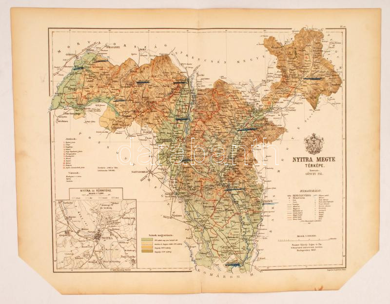 Nyitra megye térképe, Gönczy Pál - Kogutowicz Manó: Magyarország megyéinek kézi atlasza. Tervezte: - -, rajzolta: - - Bp. (1890.) Posner Károly Lajos és fia. 2 sarok levágva, 45x57cm
