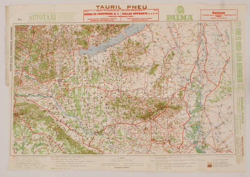 cca 1930 Pécs, Delmár-Dufka Magyarorszáh autótérképe, 1:400 000, 45x62... https://www.darabanth.com/hu/255-Gyorsarveres/255.0/Festmeny-mutargy-papirregiseg-egyeb/Terkepek~600047/cca-1930-Pecs-Delmar-Dufka-Magyarorszah-autoterkepe-1400-000-45x62cm~II1241195