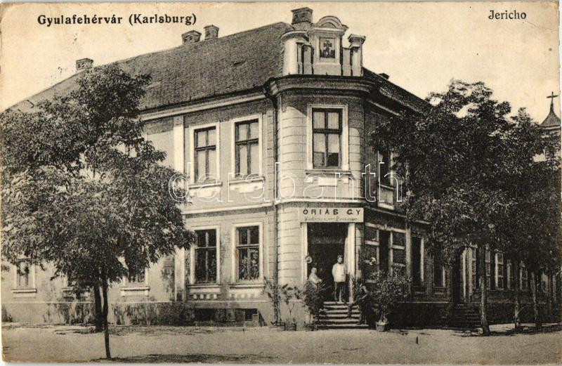 Gyulafehérvár, Jericho; Óriás Gy. fodrászüzlete; kiadja Schäser Ferenc... https://www.darabanth.com/hu/255-Gyorsarveres/255.0/Kepeslapok/Erdely~200025/Gyulafehervar-Jericho-Orias-Gy-fodraszuzlete-kiadja-Schaser-Ferencz-hairdressers-shop~II1245228