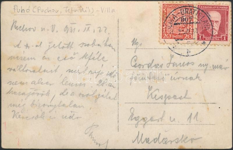 1931 Puhó, Púchov; villa, photo (fa) https://www.darabanth.com/hu/255-Gyorsarveres/255.0/Kepeslapok/Felvidek~200026/1931-Puho-Puchov-villa-photo-fa~II1242937