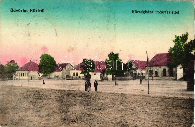 Leírás: Kürt, Kürth, Strekov; Községháza utcarészlettel, kiadja Steiner Fülöp / town hall, street (fa)