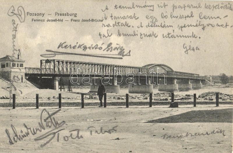 Pozsony, Pressburg, Bratislava; Ferencz József híd / bridge https://www.darabanth.com/hu/255-Gyorsarveres/255.0/Kepeslapok/Felvidek~200026/Pozsony-Pressburg-Bratislava-Ferencz-Jozsef-hid-bridge~II1248696