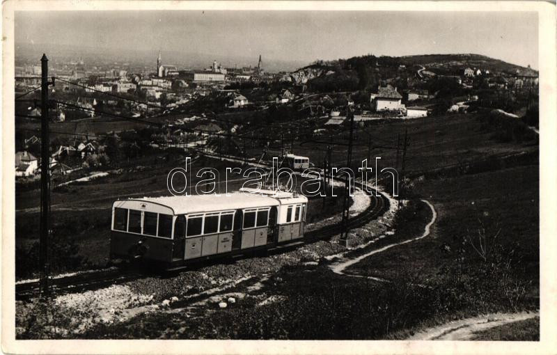 Leírás: Budapest, látkép a budai hegyekről, fogaskerekű