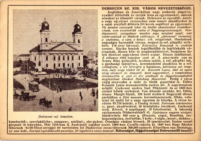 Leírás: Debrecen nevezetességei, Református templom; kiadja Farkasfalvi Kornél (EK)