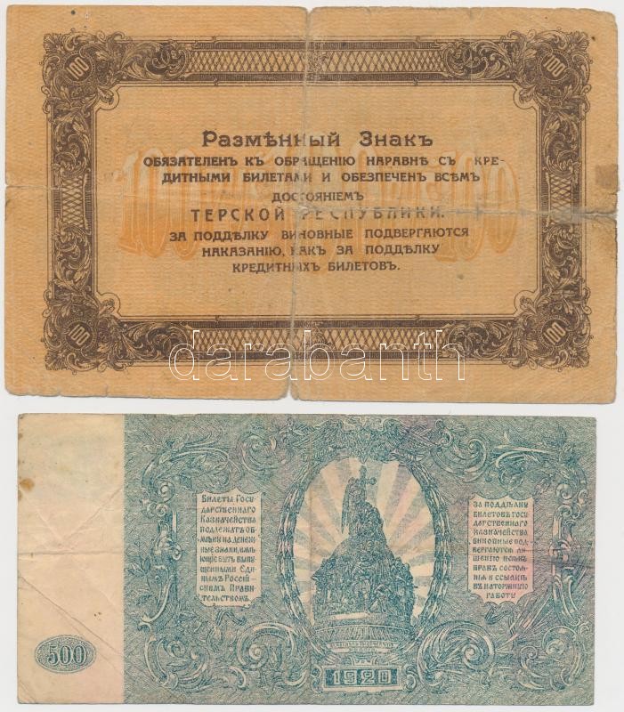 Orosz Polgárháború / Észak-Kaukázus / Tereki Köztársaság 1918. 100R + Dél-Oroszország / Wrangel Hadserege 1920. 500R T:III,III-