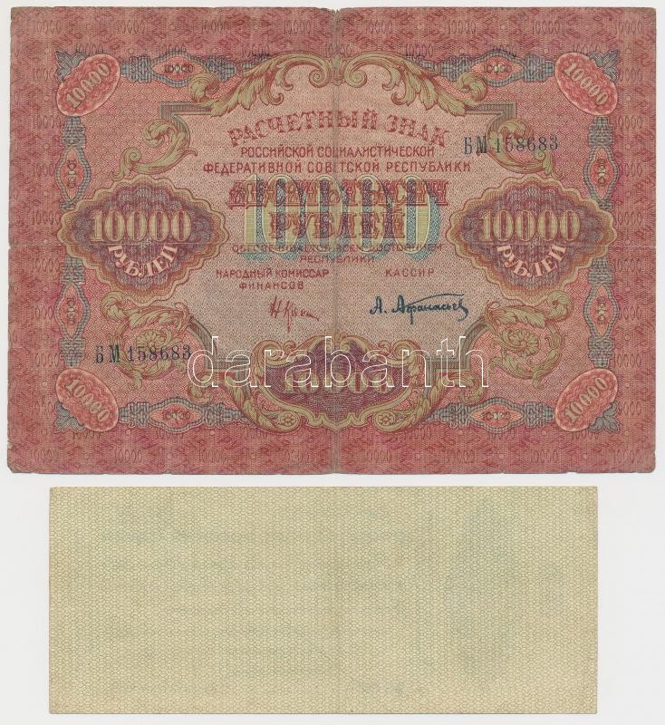Szocialista Szövetségi Szovjet Köztársaság 1919. 10.000R + Orosz Polgárháború / Szibéria és Urál / Ideiglenes Szibériai Igazgatás 1919. 50R T:III