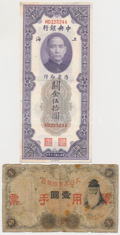Vegyes: Kína / Shanghai 1930. 50CGU + Japán megszállás 1938. 1Y + 5Y + Fülöp-szigetek / Japán megszállás 1942. 10c T:III,III-