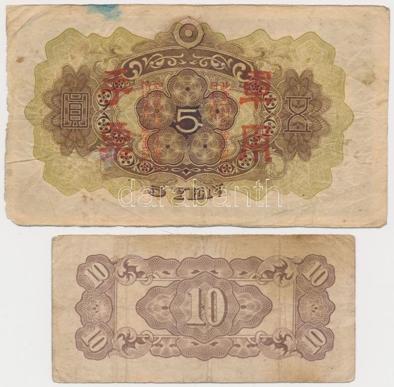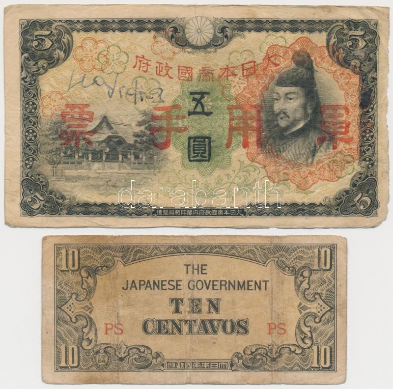 Mixed: China / Shanghai 1930. 50 Customs Gold Units + Japanese occupation 1938. 1 Yen + 5 Yen + Philippines / Japanese occupation 1942. 10 Centavos C:F,VG