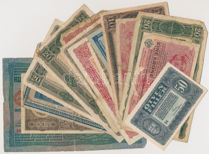 Leírás: 15db-os vegyes magyar korona bankjegy tétel, közte felülbélyegzett is T:vegyes