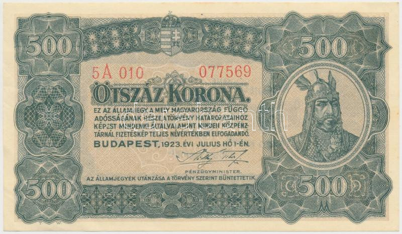 Leírás: 1923. 500K "T.W." jelöléssel, nyomdahely nélküli, vágáshibás T:II-,III szép papír