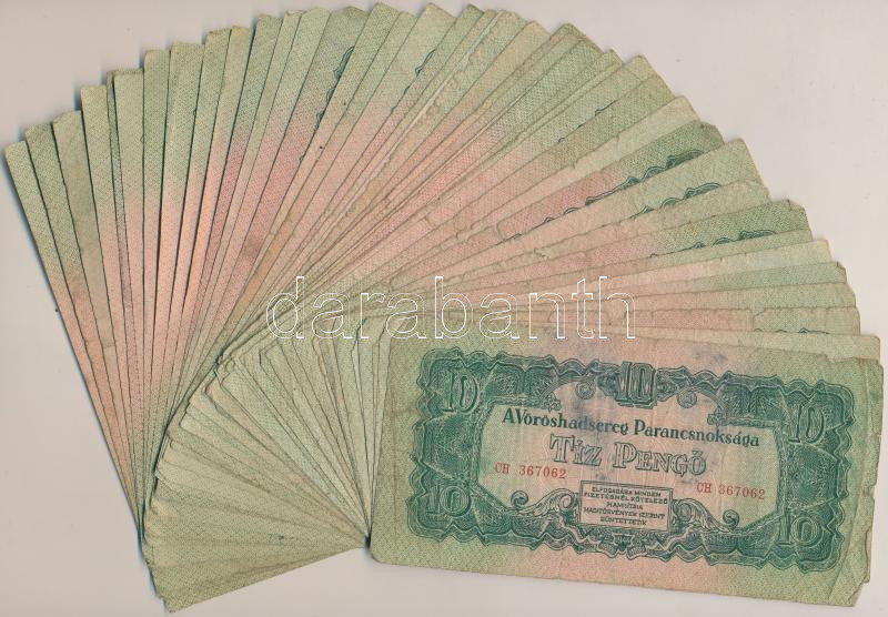 1944. 10P "A Vörös Hadsereg Parancsnoksága" (43x) T:vegyes https://www.darabanth.com/hu/255-Gyorsarveres/255.0/Numizmatika/Magyar-bankjegyek~9/1944-10P-A-Voros-Hadsereg-Parancsnoksaga-43x-Tvegyes~II1239917
