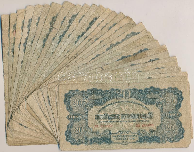 1944. 20P "A Vörös Hadsereg Parancsnoksága" (30x) T:vegyes https://www.darabanth.com/hu/255-Gyorsarveres/255.0/Numizmatika/Magyar-bankjegyek~9/1944-20P-A-Voros-Hadsereg-Parancsnoksaga-30x-Tvegyes~II1239920
