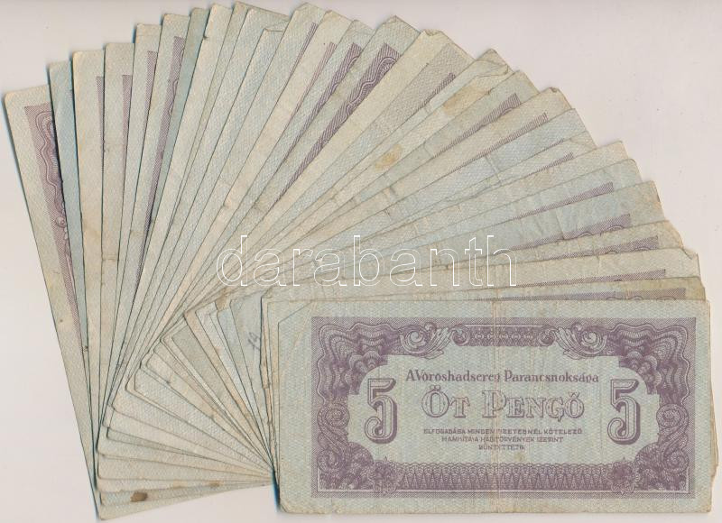 1944. 5P "A Vörös Hadsereg Parancsnoksága" (30x) T:vegyes https://www.darabanth.com/hu/255-Gyorsarveres/255.0/Numizmatika/Magyar-bankjegyek~9/1944-5P-A-Voros-Hadsereg-Parancsnoksaga-30x-Tvegyes~II1239900