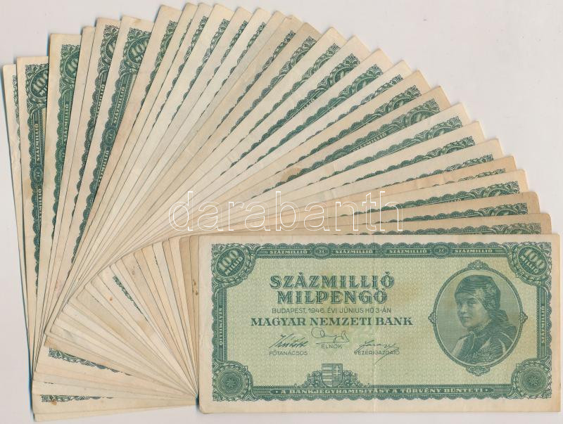 1946. 100.000.000MP (30x) T:vegyes https://www.darabanth.com/hu/255-Gyorsarveres/255.0/Numizmatika/Magyar-bankjegyek~9/1946-100000000MP-30x-Tvegyes~II1240362
