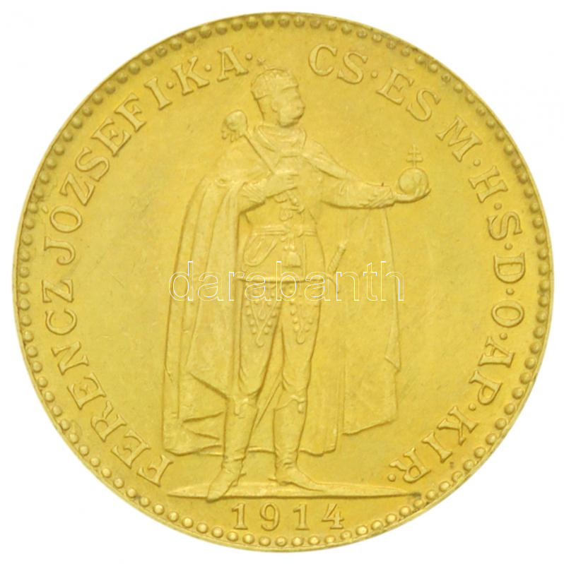 Hun... https://www.darabanth.com/hu/255-Gyorsarveres/255.0/Numizmatika/Magyar-es-kulfoldi-aranypenzek-es-emlekveretek~12/1914KB-20K-Au-Ferenc-Jozsef-679g0900-Bosznia-cimerrel-T2--Hungary-1914-20-Kronen-Au-Fra~II1241912