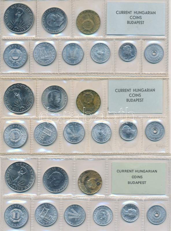 Leírás: 1972. 2f-10Ft 9db klf érmés forgalmi sor fóliatokban (3x) T:1