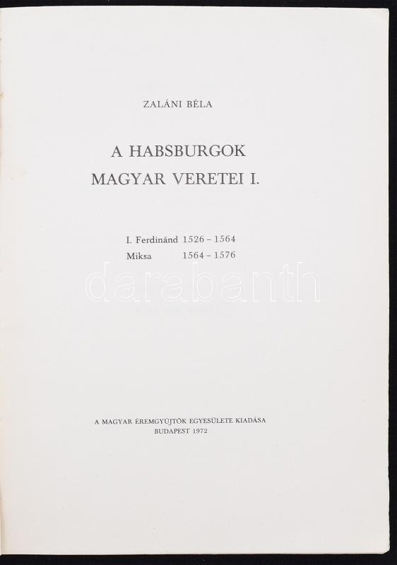Zaláni Béla: I. Ferdinánd és Miksa magyar veretei. Bp., 1969, Éremgyűj... https://www.darabanth.com/hu/255-Gyorsarveres/255.0/Numizmatika/Numizmatikai-irodalom~2/Zalani-Bela-I-Ferdinand-es-Miksa-magyar-veretei-Bp-1969-Eremgyujtok-Kiadoi-papirkot~II1247391