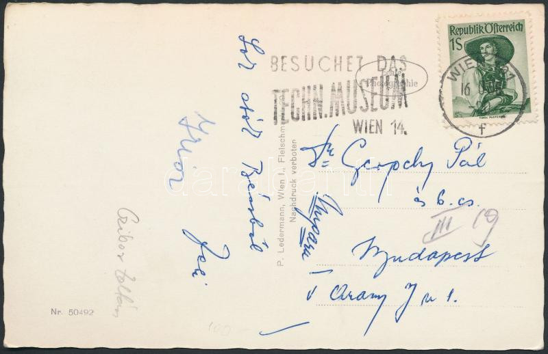Leírás: Czibor Zoltán (1929-1997) focista üdvözlő sorai és aláírása Bécsből küldött levelezőlapon