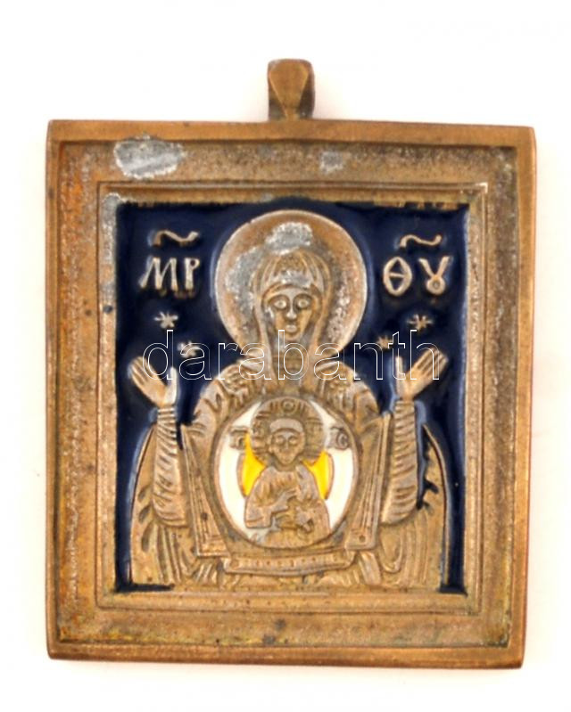 Leírás: Az Istenanya a Jel novgorodi orosz ikon utazó ikon formátumú modern másolata, zománcozott fém, eredetiségigazolással, saját dobozában, 6×5,5 cm