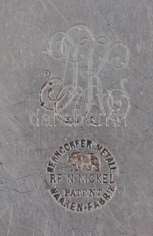 Leírás: Berndorf alpakka füles tál, monogrammal, jelzett, d: 20 cm