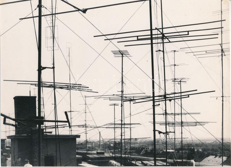 Leírás: 1963 Fábos Mihály: Antennaerdő (Győrben), feliratozott vintage fotóművészeti alkotás, 17,5x23,5 cm