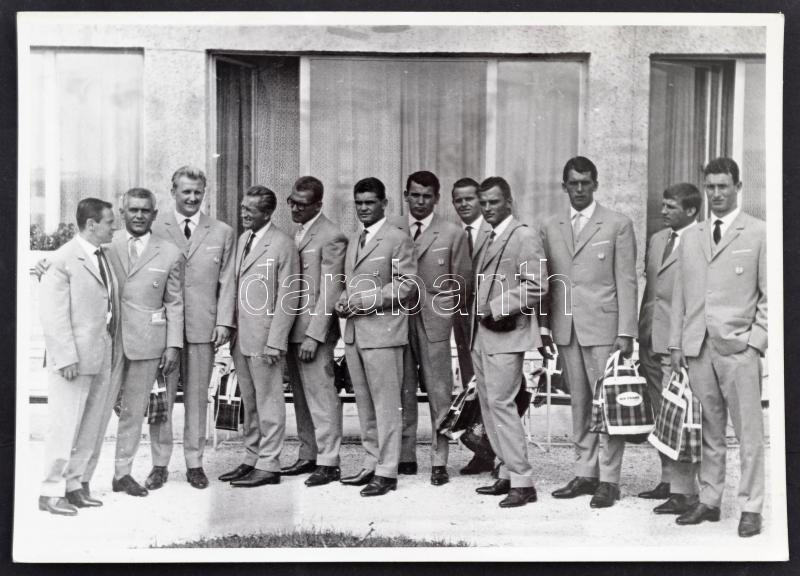 Leírás: 1963 Porto Allegre a magyar vízilabda válogatott Laky Károllyal 16x12 cm