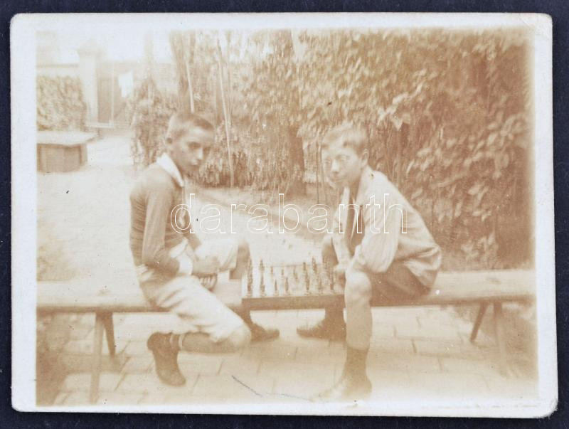 Leírás: cca 1920 Sakkozó gyerekek fotó / Chess player kids. 6x5 cm