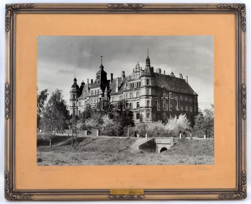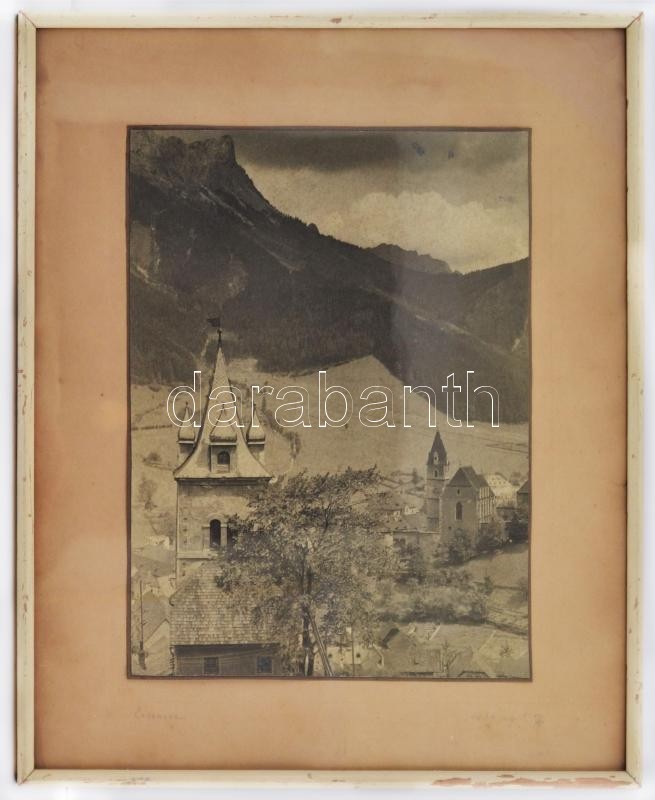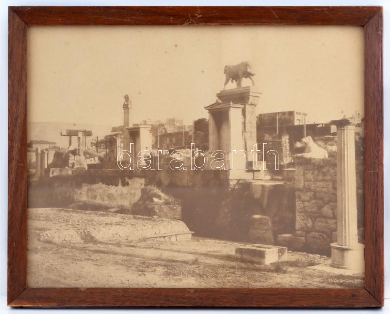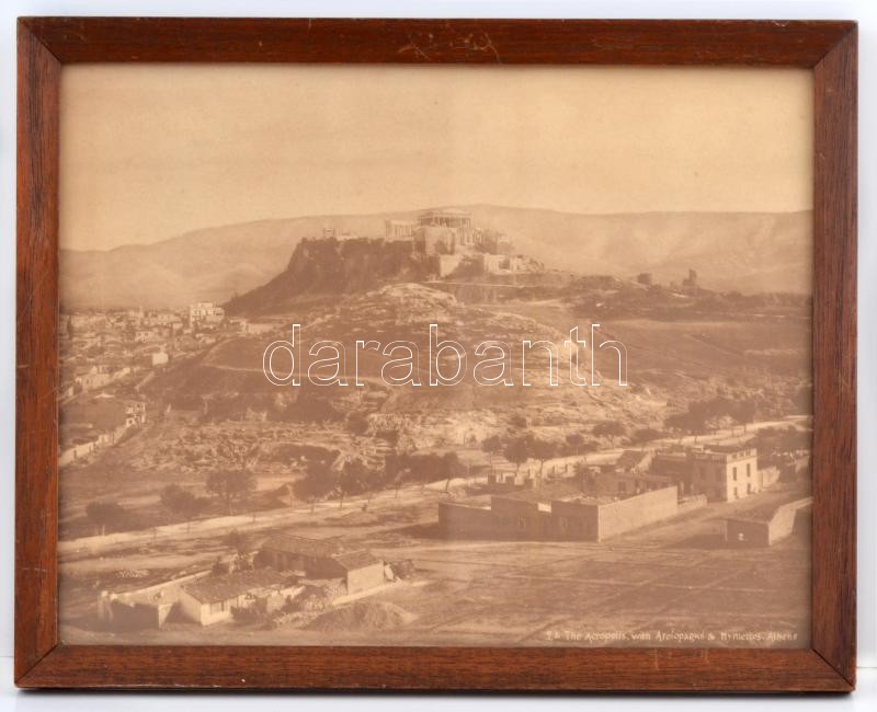 cca 1930-40 Akropolisz, Athén, Görögország, régi fotók üvegezett keretben, 2db, 22x27cm + cca 1930-40 Eisenerz, Rat der Kongresstadt Güstrow, régi, feliratozott német fotók üvegezett keretben, 2db, 29x21cm, 29x39cm