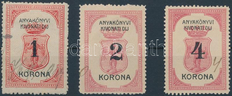 Leírás: 1920 Miskolc városi 1K, 2K, 4K illetékbélyeg (17.500)