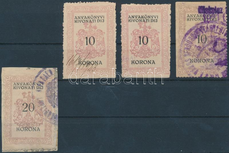 Leírás: 1920 Miskolc városi 3 x 10K, 20K illetékbélyeg (24.000)