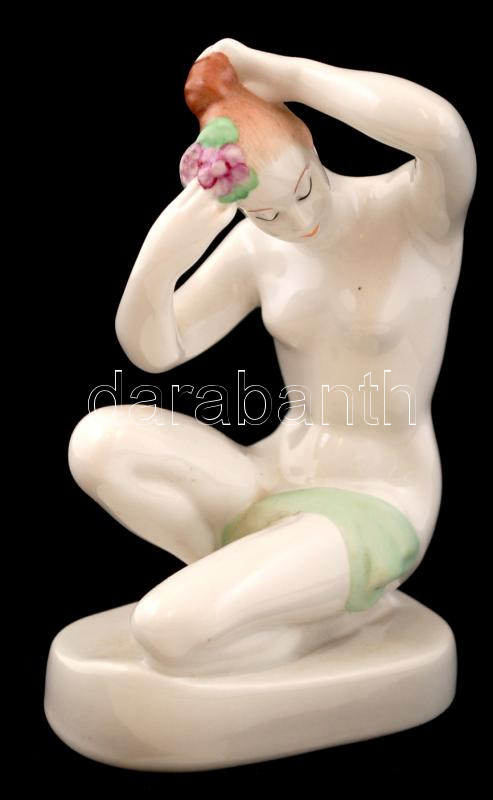 Leírás: Aquincumi porcelán akt, kézzel festett, hibátlan, jelzett, m: 16 cm