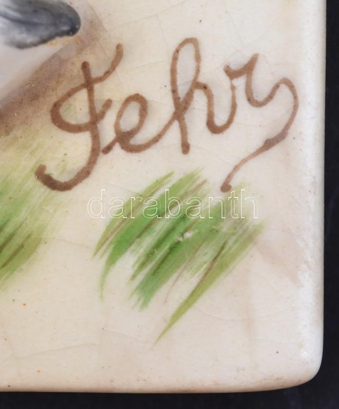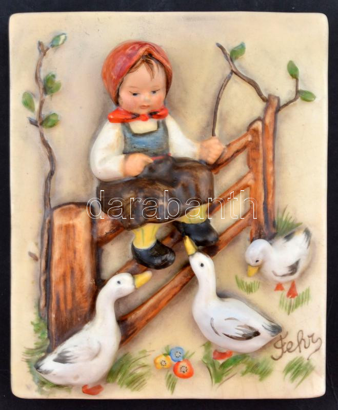 Leírás: Goebel (1944-49) kislány libákkal, porcelán falikép, kézzel festett, jelzett, hibátlan, 15x13cm