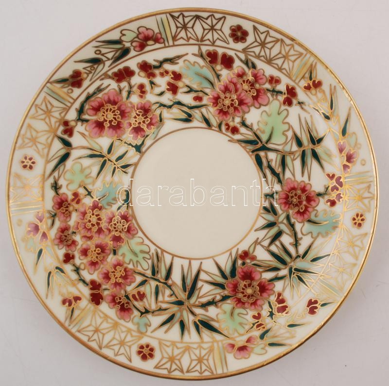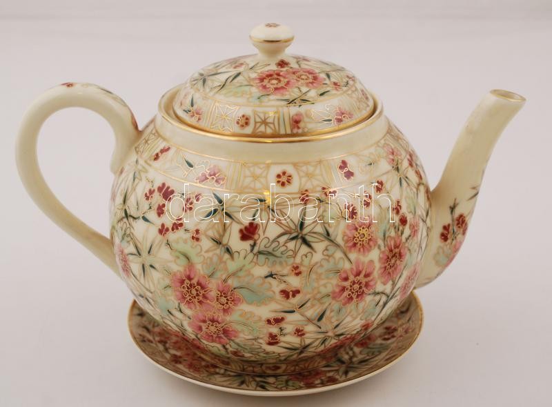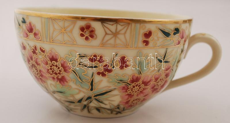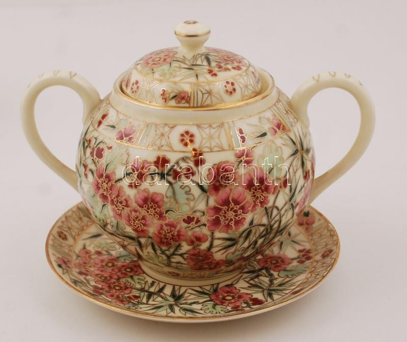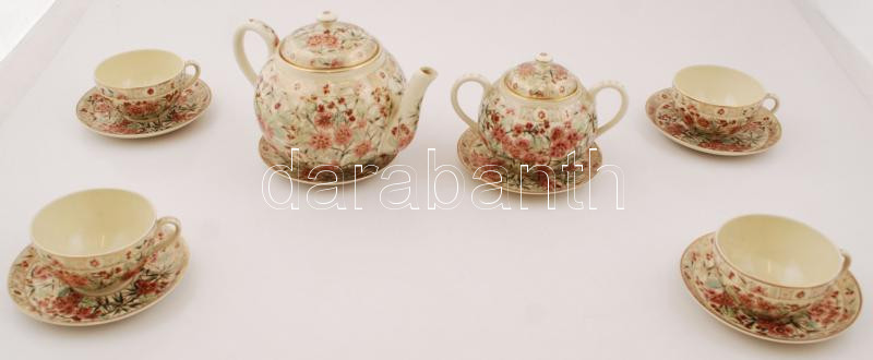 Leírás: Zsolnay perzsa mintás hiányos teás készlet, kézzel festett, jelzett, sérült több helyen