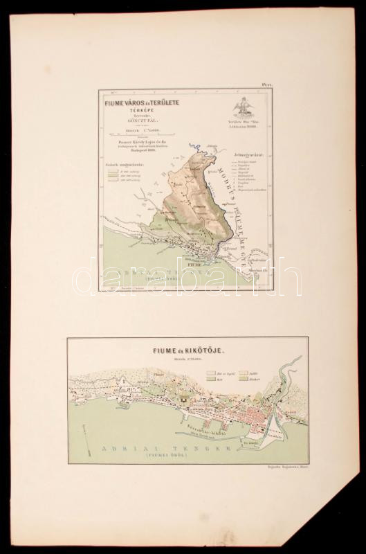 Fiume térképe, Gönczy Pál - Kogutowicz Manó: Magyarország megyéinek kézi atlasza. Tervezte: - -, rajzolta: - - Bp. (1890.) Posner Károly Lajos és fia. Sarok levágva,hajtás nyommal, 45x29cm